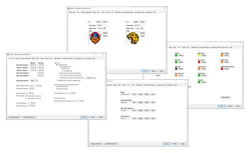 Display your teams' names, logos, and colors. Features customizable sounds, keyboard shortcuts, and various rule settings. Use your own period and timeout durations.
