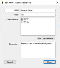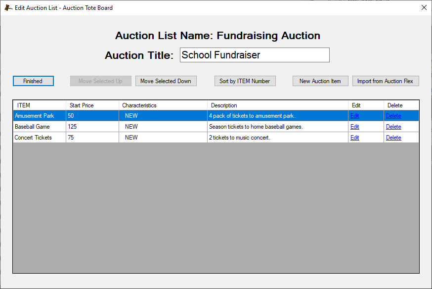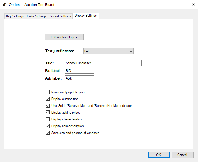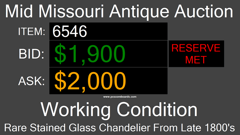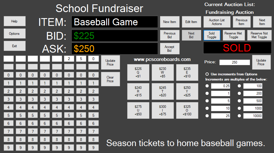 Auction Tote Board is an easy to use, cost effective, and professional auctioneer tote board that allows your bidders to easily track auction progress during live auctions. Combine our auction tote board software with your computer and projector/display for a complete tote board solution.