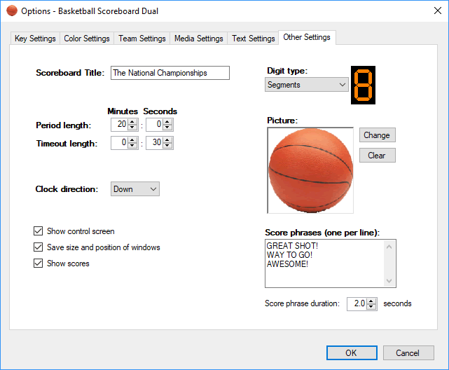 - Customizable court and scoreboard pictures