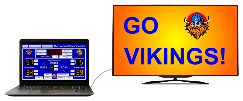 Our dual court basketball scoreboard software transforms your computer into a virtual basketball scoreboard using the computer and display you already have.