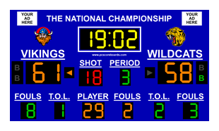| Scoreboard Fields Period Time, Period, Timeouts, Possession, Scoreboard Title, Advertisement/Picture Space |