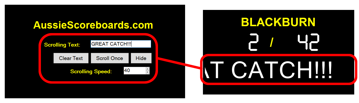 Scrolling message is a feature that allows you to display your own custom messages on the scoreboard display.