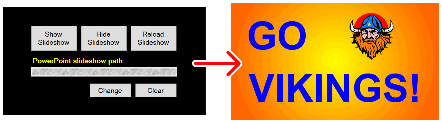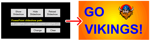 Show your own PowerPoint slideshows on the scoreboard during breaks in the game!