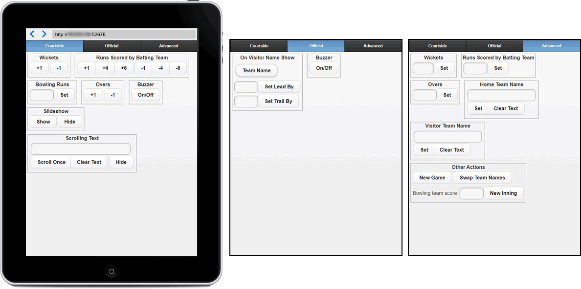 The Control Screen is an intuitive operator console for controlling the scoreboard. It includes 1-touch buttons and number entry fields for quick, easy, and error-free control of the scoreboard.
