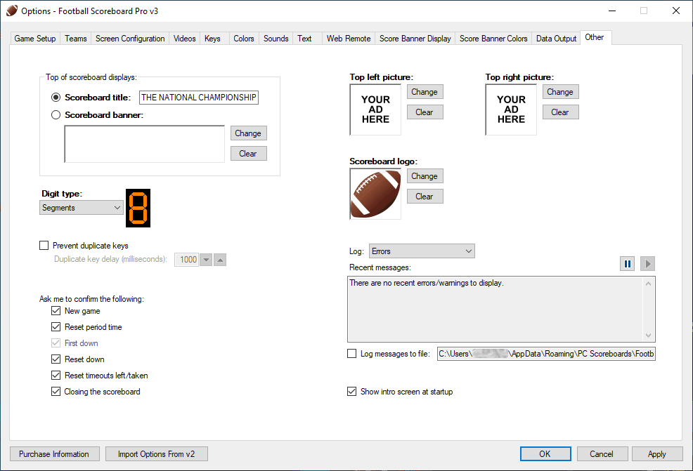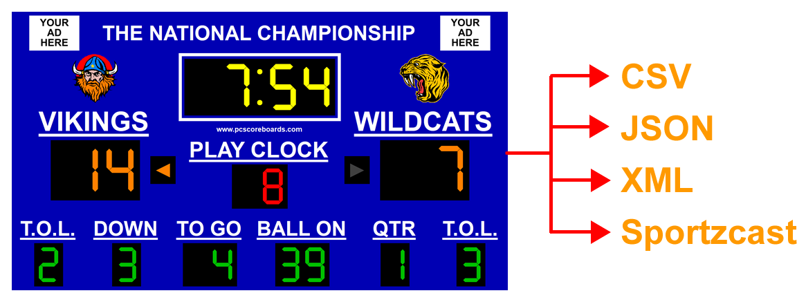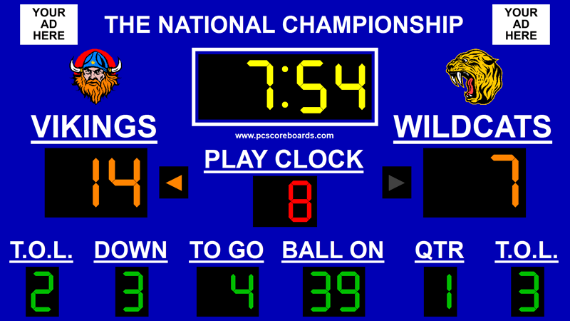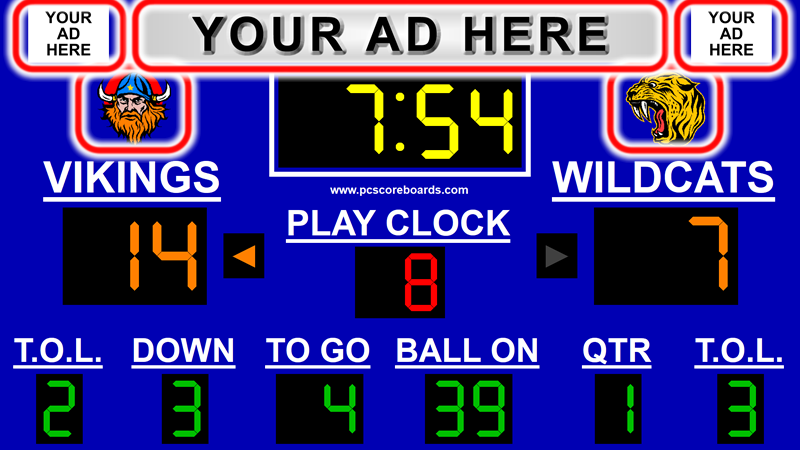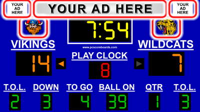 Display your own advertisements or other pictures on your scoreboard. Use the advertising space to raise money for your school, team, or organization.