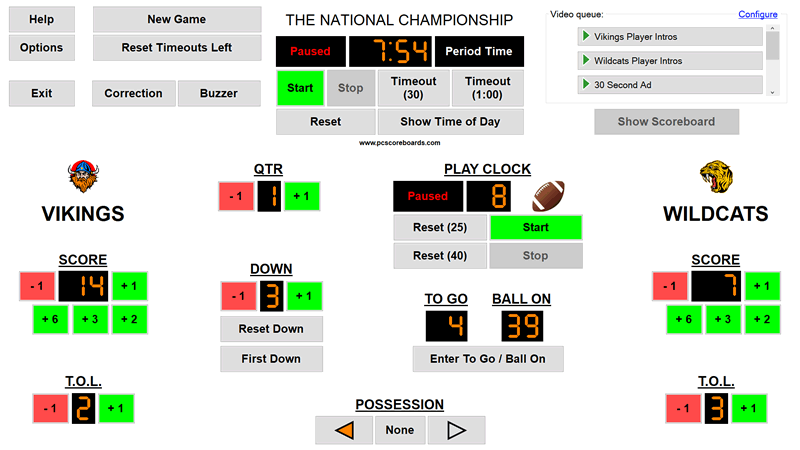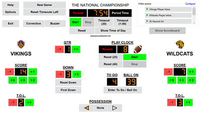 Football Scoreboard Pro v3 is an easy to use, cost effective, and professional scoreboard that will get your players and spectators engaged in the game. Combine our football scoreboard software with your computer and projector/display for a complete scorekeeping solution.