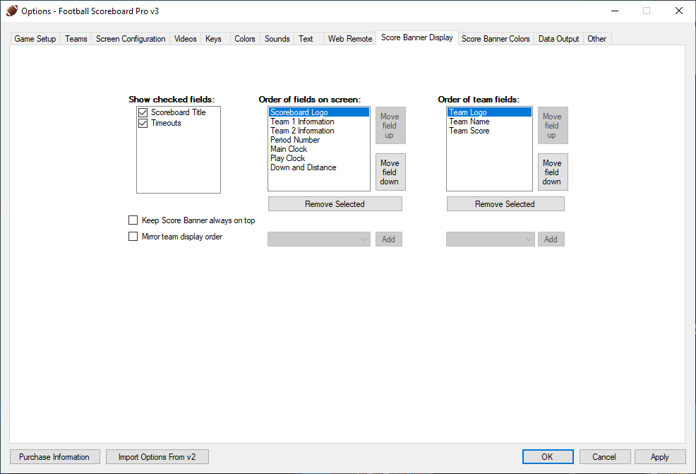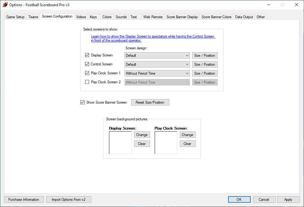 The score banner screen allows you to professionally overlay the current scoreboard information on top of live or recorded video.