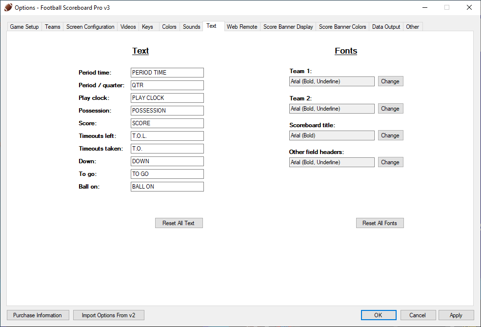 This intuitive screen has fields that you can type into to change each number that appears on the scoreboard.