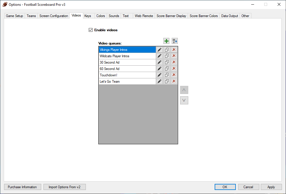 Video player is a feature that allows you to play your own videos on demand on the scoreboard.