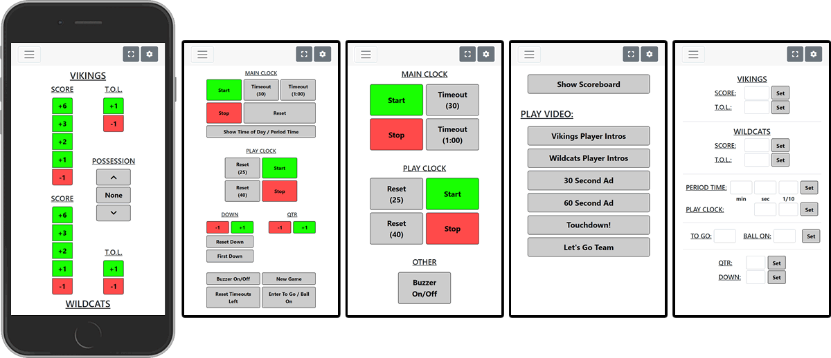 There you can tap buttons to change scores, control the game clock, set the possession arrow, sound the buzzer, and more.
