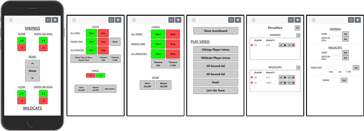 There you can tap buttons to change scores, control the game clock, set the goal indicator, sound the horn, and more.