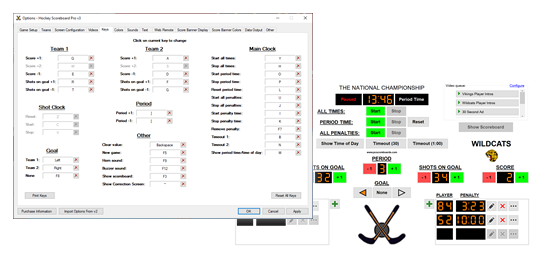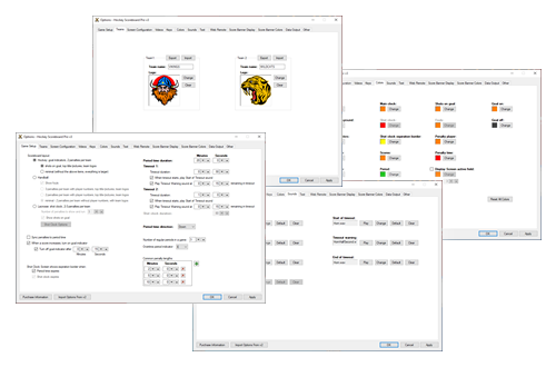 PC Scoreboards hockey, handball, and lacrosse scoreboard feature customizable team names, team logos, colors, sounds, keyboard shortcuts, and various rule settings. Display your teams' names and colors. Use your own period and timeout durations.