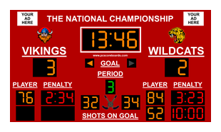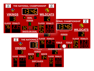- Hockey Scoreboard Pro v3 - A scoreboard for hockey, handball, and lacrosse that includes the basic features plus shots on goal, penalty clocks with player numbers, fouls, shot clock, and team logos.