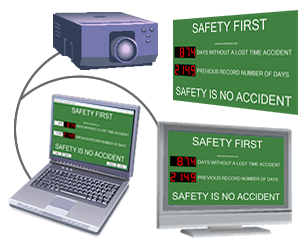 With PC Scoreboards you can use the computer and projector or large screen your organization already owns with our 21st century safety sign solution. Read more on how our video scoreboards work.