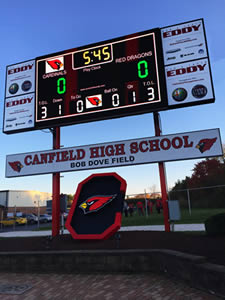 Display types: LED displays, Centre-ice Hockey Scoreboards, Wall Installation Scoreboards, School Gym Scoreboards, Football Scoreboards