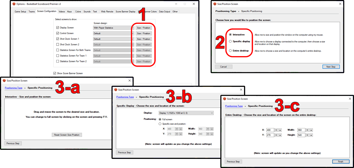 Easily size and position your scoreboard screens using a variety of options.