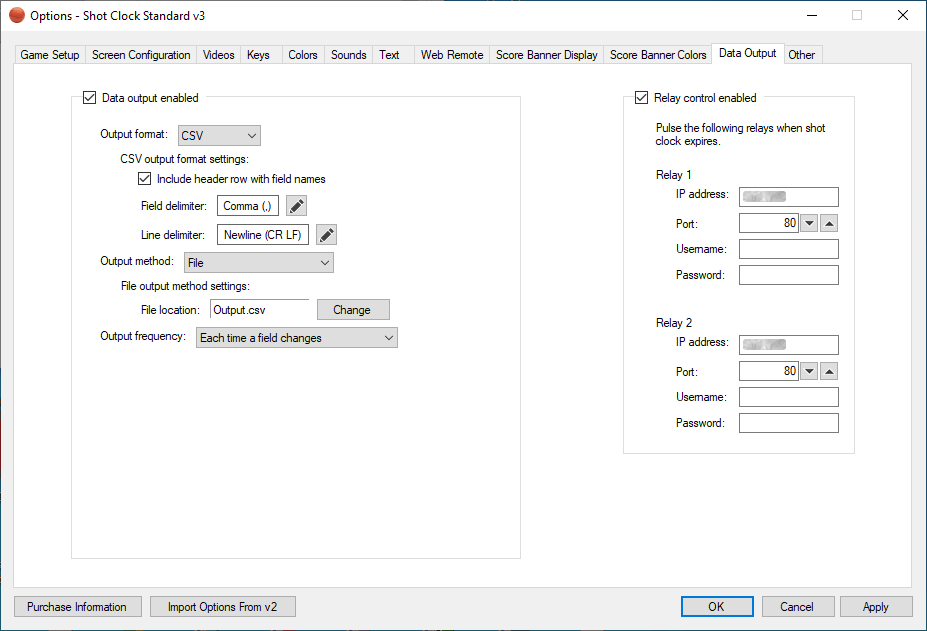 The data output feature allows you to send your live scoreboard data to other systems such as graphic generators.