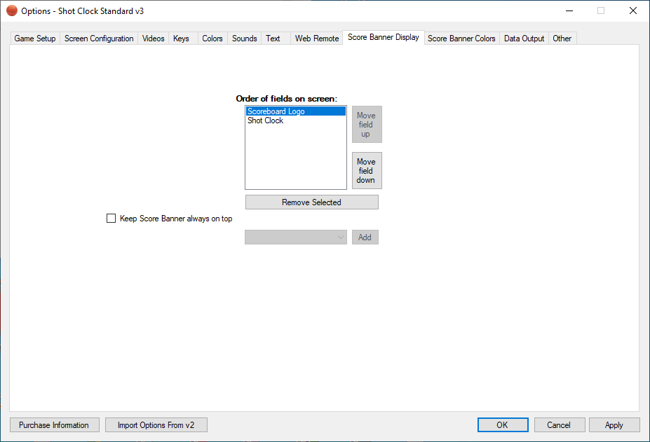 The score banner screen allows you to professionally overlay the current scoreboard information on top of live or recorded video.