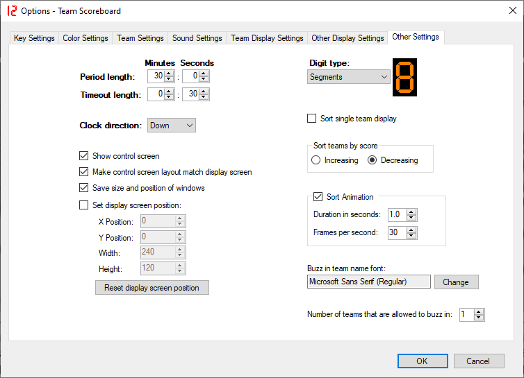 This screen is a separate window that is only visible to the scoreboard operator, so spectators do not see mouse or keyboard input.