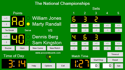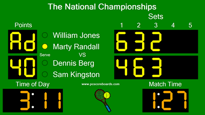 Tennis Scoreboard Pro is an easy to use, cost effective, and professional scoreboard that will get your players and spectators engaged in the game. Combine our tennis scoreboard software with your computer and projector/display for a complete scorekeeping solution.