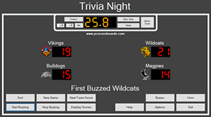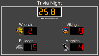 Team Scorboard V2 is an easy to use, cost effective, and professional trivia scoreboard that will get your players and spectators engaged in the game. Combine our trivia scoring software with your computer and projector/display for a complete trivia scorekeeping solution.
