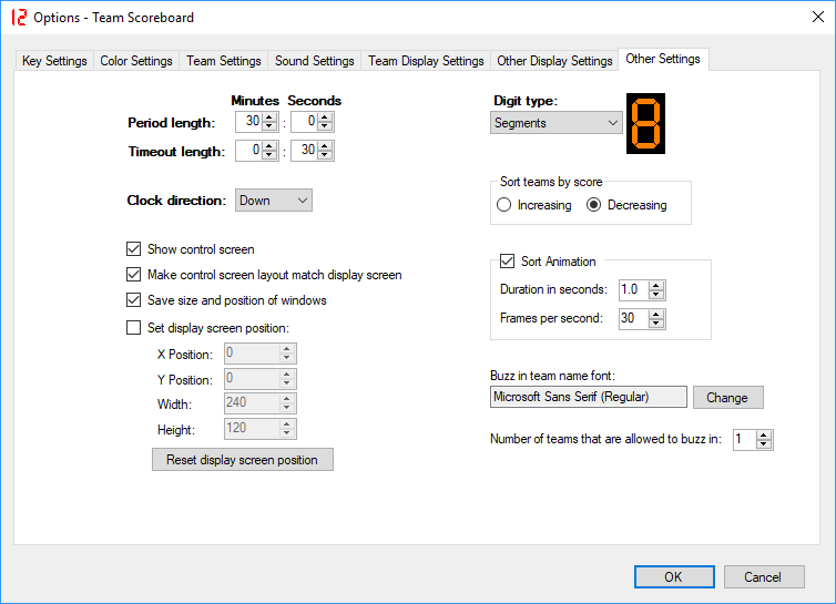 This screen is a separate window that is only visible to the scoreboard operator, so spectators do not see mouse or keyboard input.
