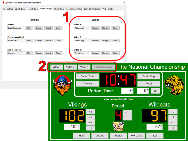 1. In the scoreboard options, choose the video files that you want to play on the scoreboard.