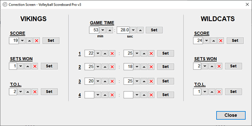 The Correction Screen makes it easy to correct entry mistakes or adjust numbers on the scoreboard.