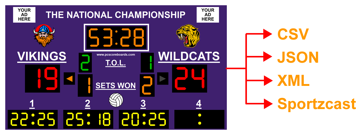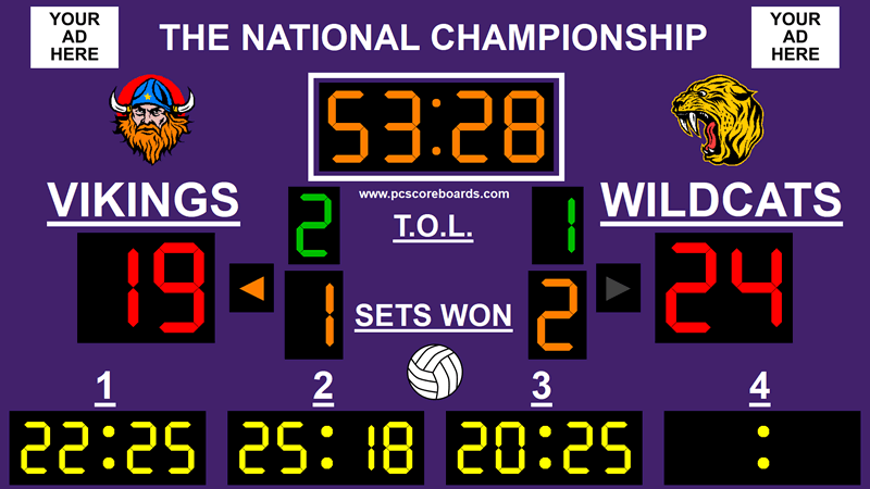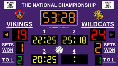 PC Scoreboards are more versatile and less expensive to maintain than physical scoreboards. Our volleyball timer solution allows you to use different scoreboards for sport-specific functionality while reusing the same display.