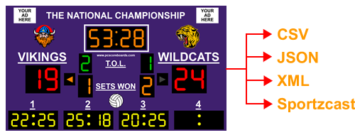 The data output feature allows you to send your live scoreboard data to other systems such as graphic generators.