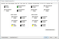 The score banner screen allows complete configuration of scoreboard elements, size, position, and colors.