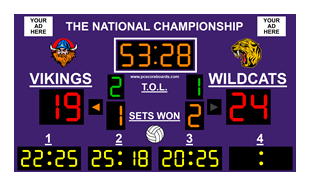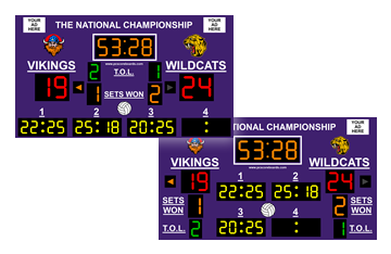 With PC Scoreboards you can use the computer and projector or large screen your organization already owns with our 21st century volleyball scoring solution. Read more on how our video scoreboards work.