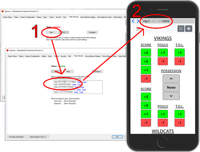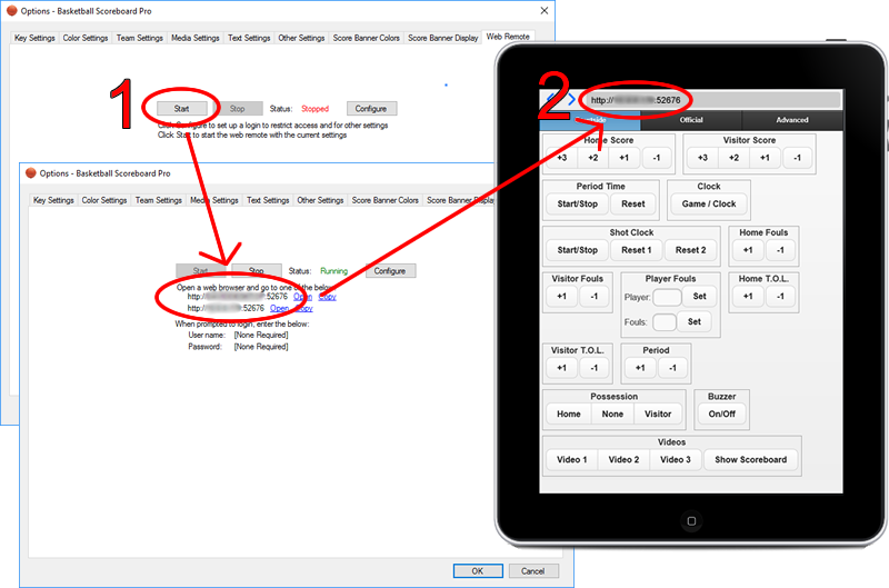While the scoreboard application runs on a Windows computer, the Web Remote feature allows you to control that scoreboard from a remote device.